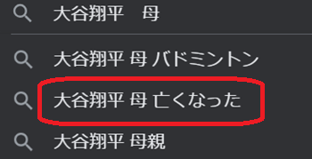 「大谷翔平 母」と検索するとなぜか「大谷翔平 母 亡くなった」と出ます。